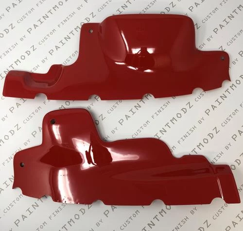 These covers are available in an assortment of coloured plastics and have been manufactured from coloured material rather than prepped, painted and lacquered. Please bear in mind before purchasing that these are not perfectly colour matched to the vehicle colours. Alternatively, the covers are available in smooth plastic, which is ready to be painted, and textured OEM plastic.  The covers can simply be removed for servicing or should you fancy changing the theme of your engine bay.Â