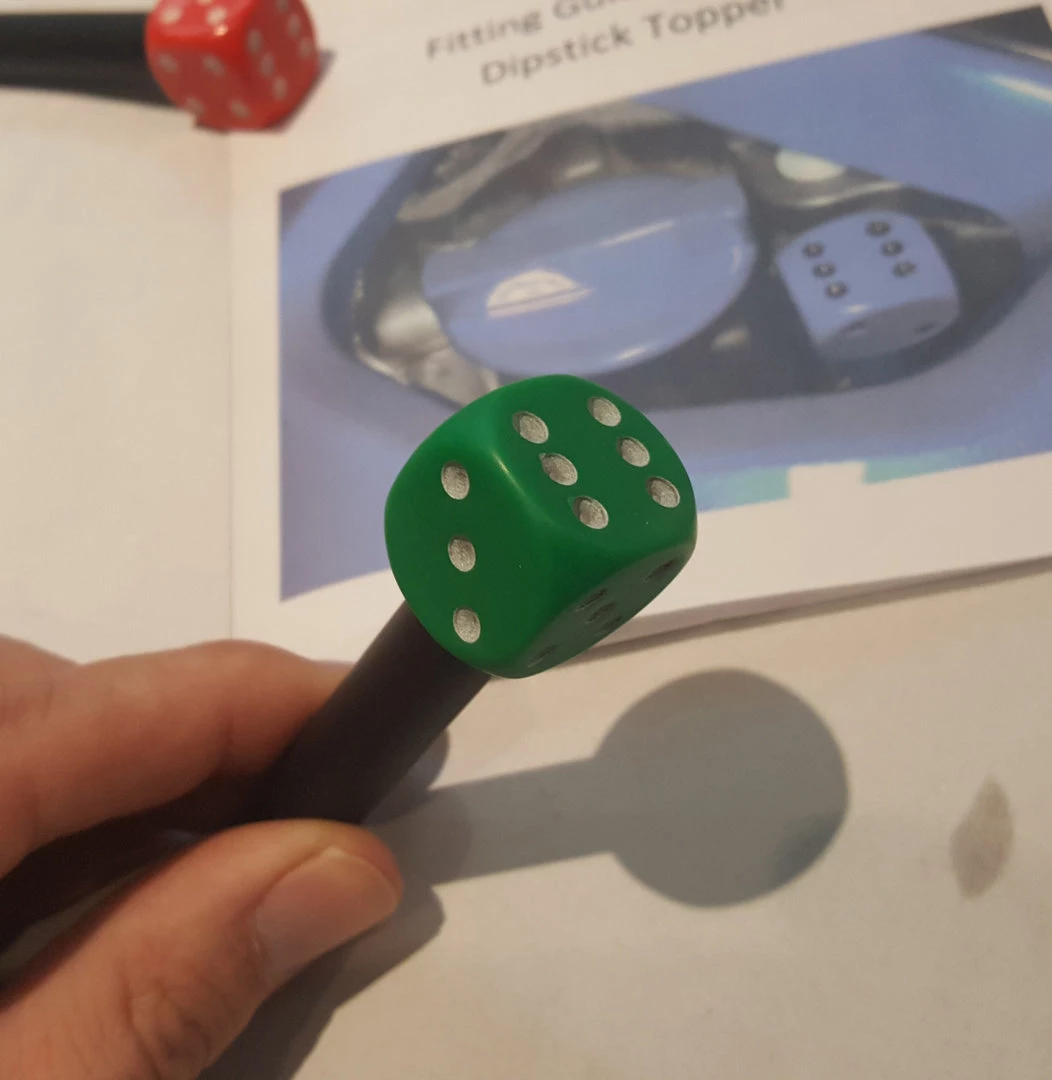A custom dice dipstick topper which gives that quirky touch to your engine bay