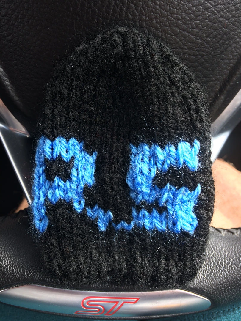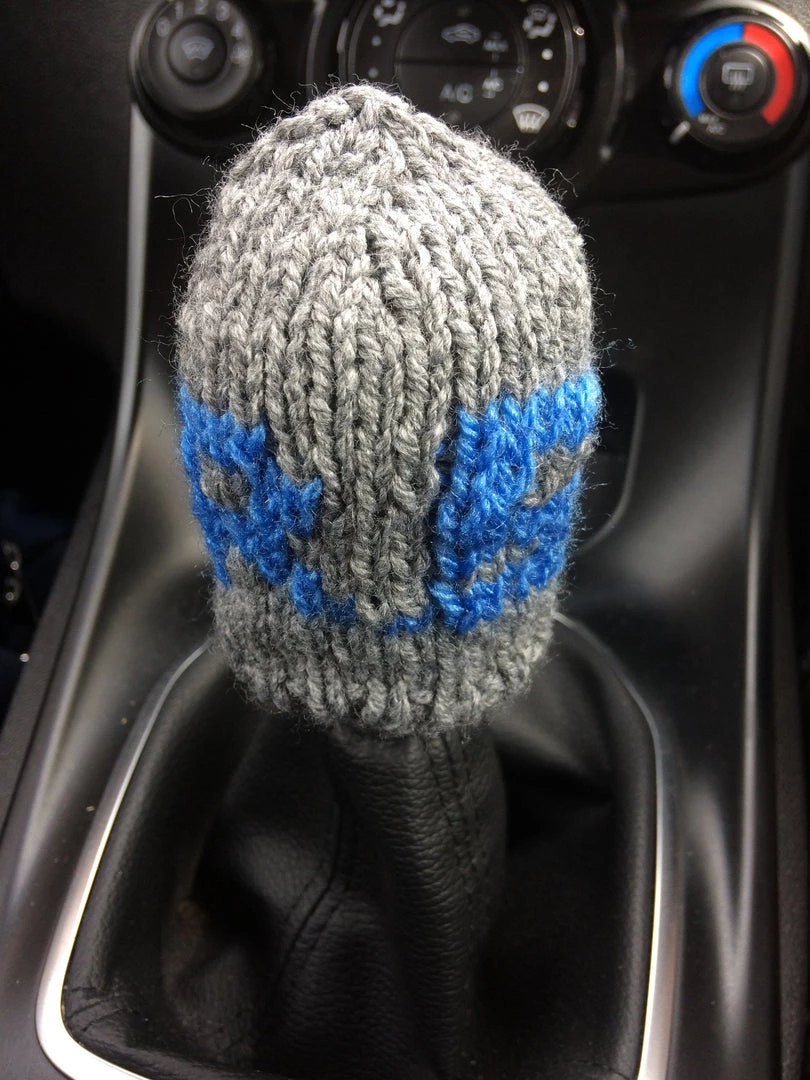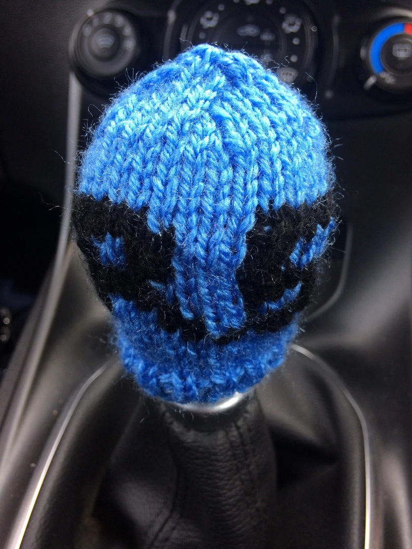 Style your gear knob and keep your hand warm in winter with a hand knitted ‘ST’ gear knob cosie!