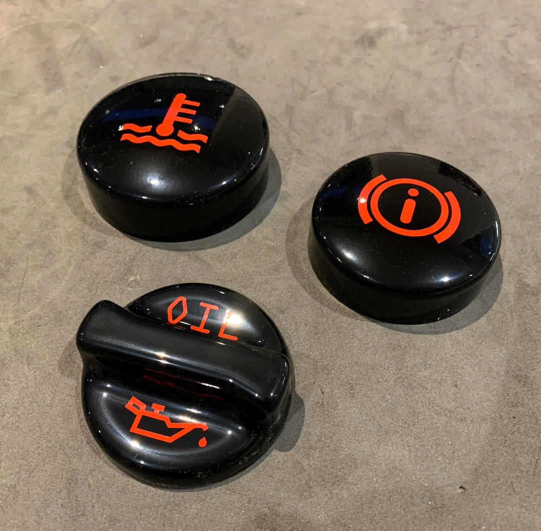 Brake Fluid Decal, Oil Decal and Water Decal.