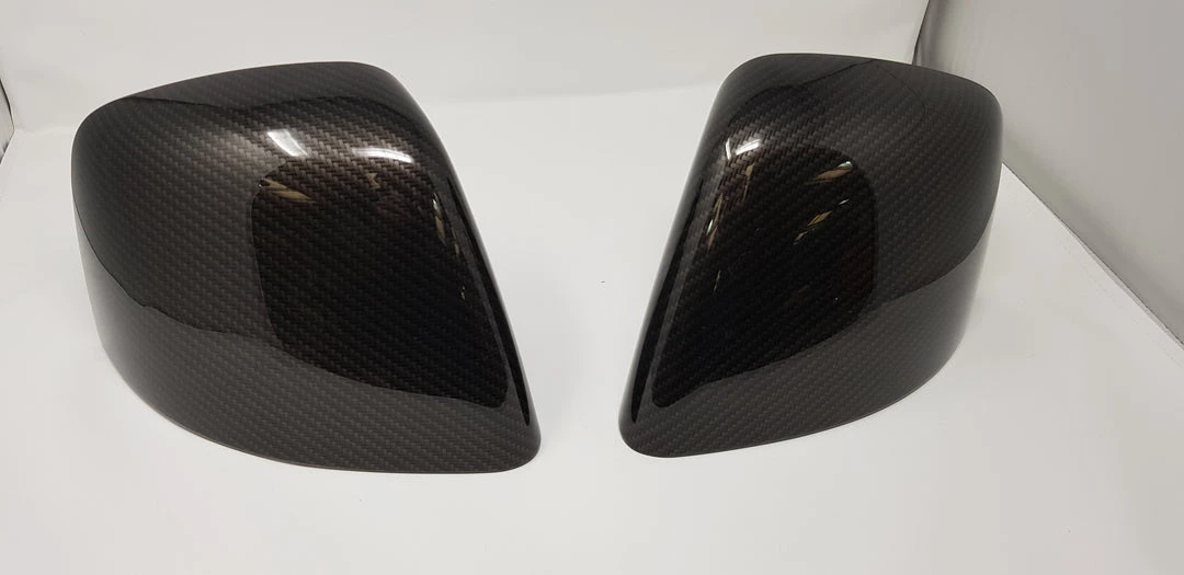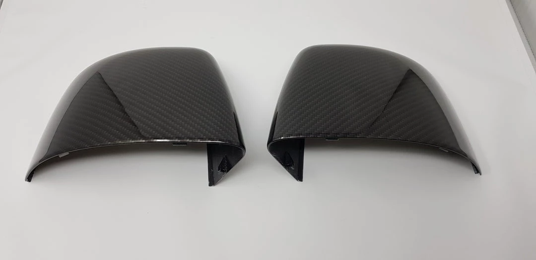 A pair of ‘Twin Glass’ Mirror Caps for the Ford Transit Connect (Oct 13-Oct 18). Professionally painted in Gloss Black or hydrodipped in our Carbon Fibre print.
