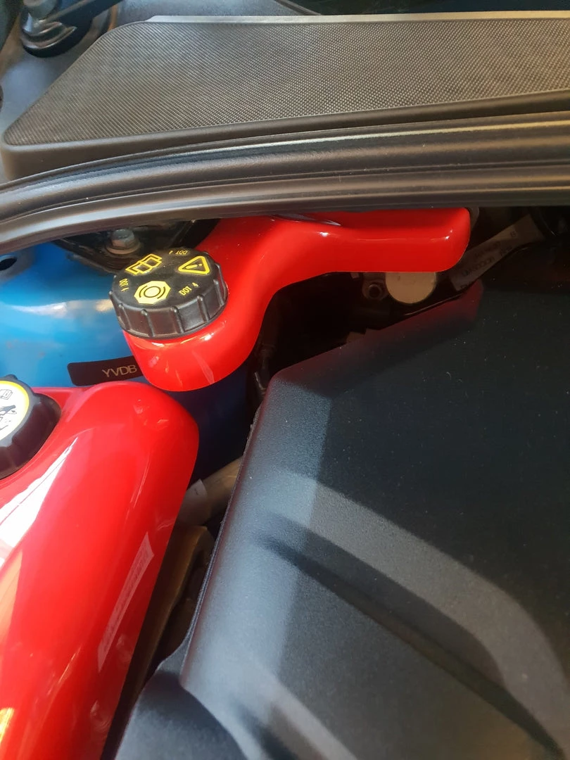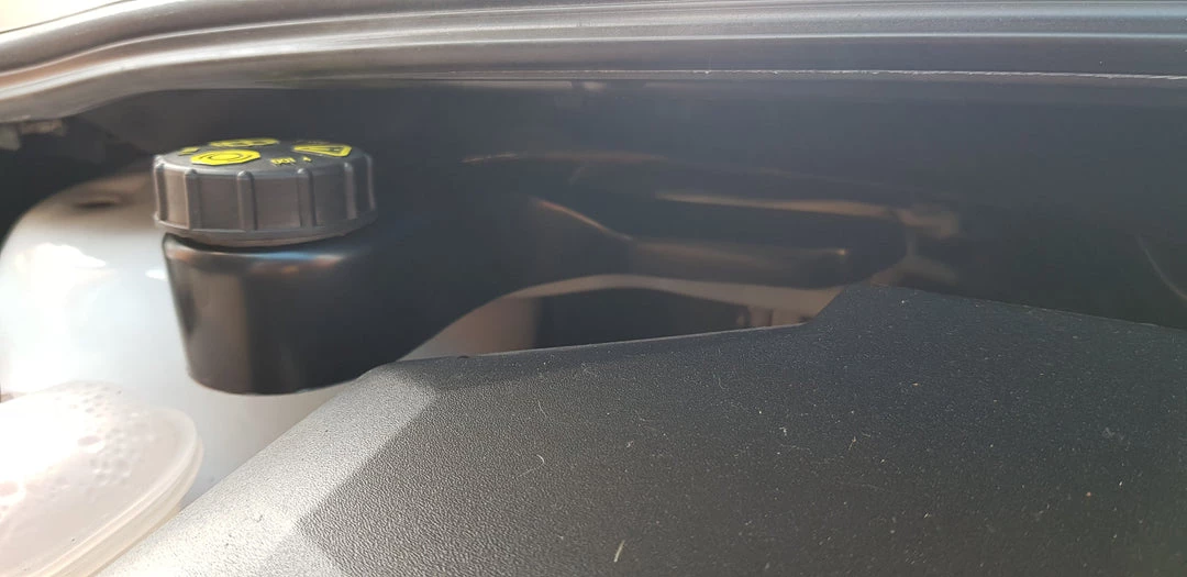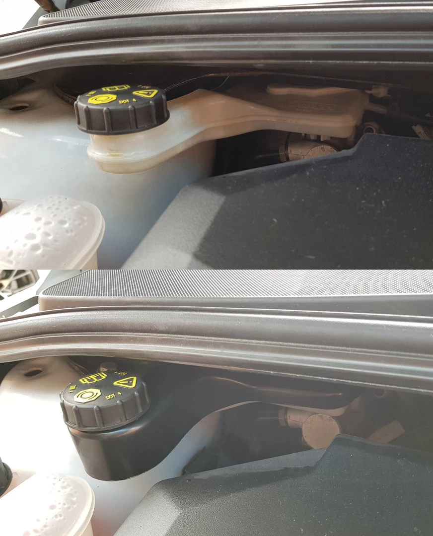 Here we have a custom brake reservoir cover for the MK3/3 Focus. This cover is quite a subtle modification – have a look below at the before and after photographs because when fitted it does hide the unsightly white bottle.