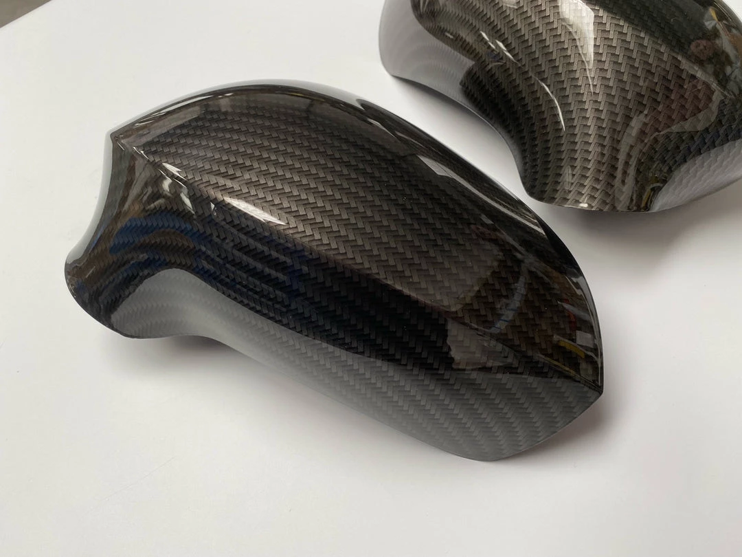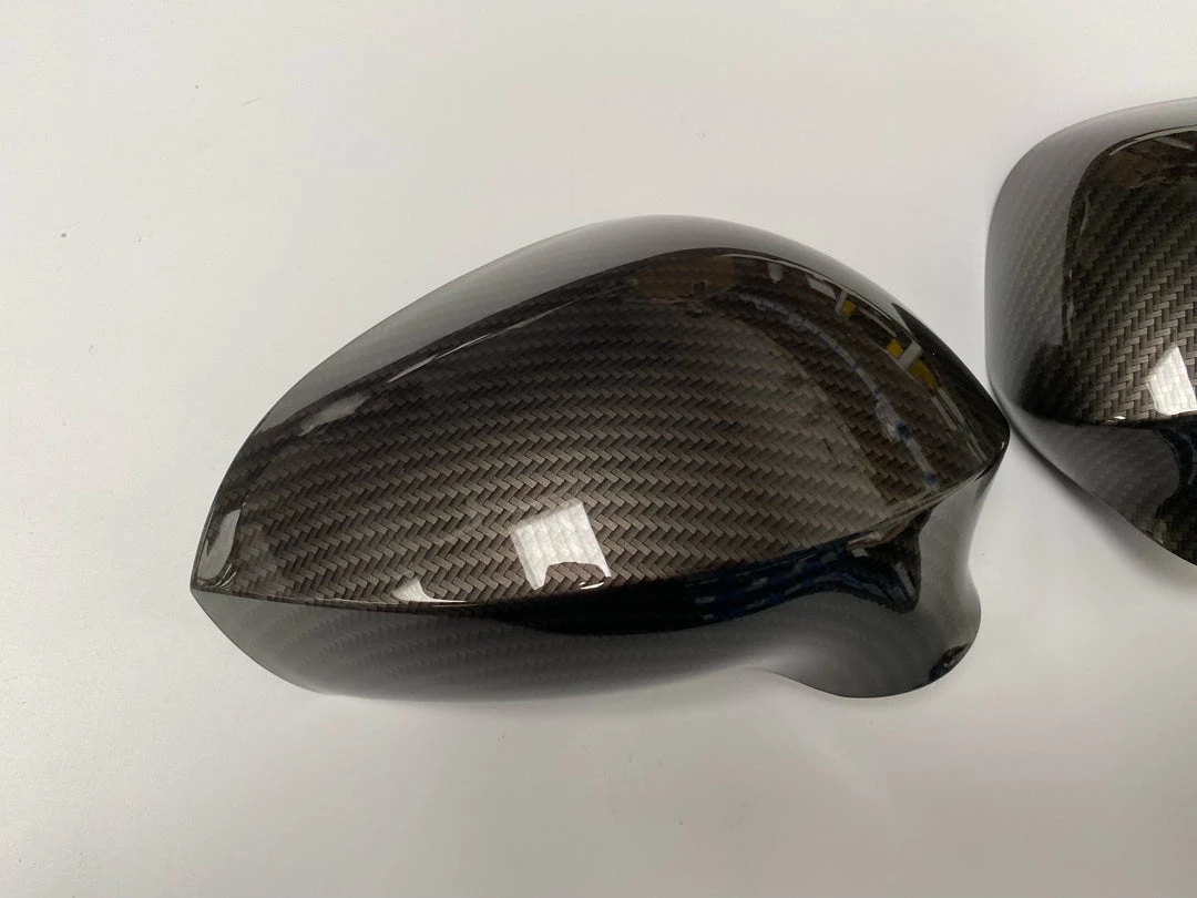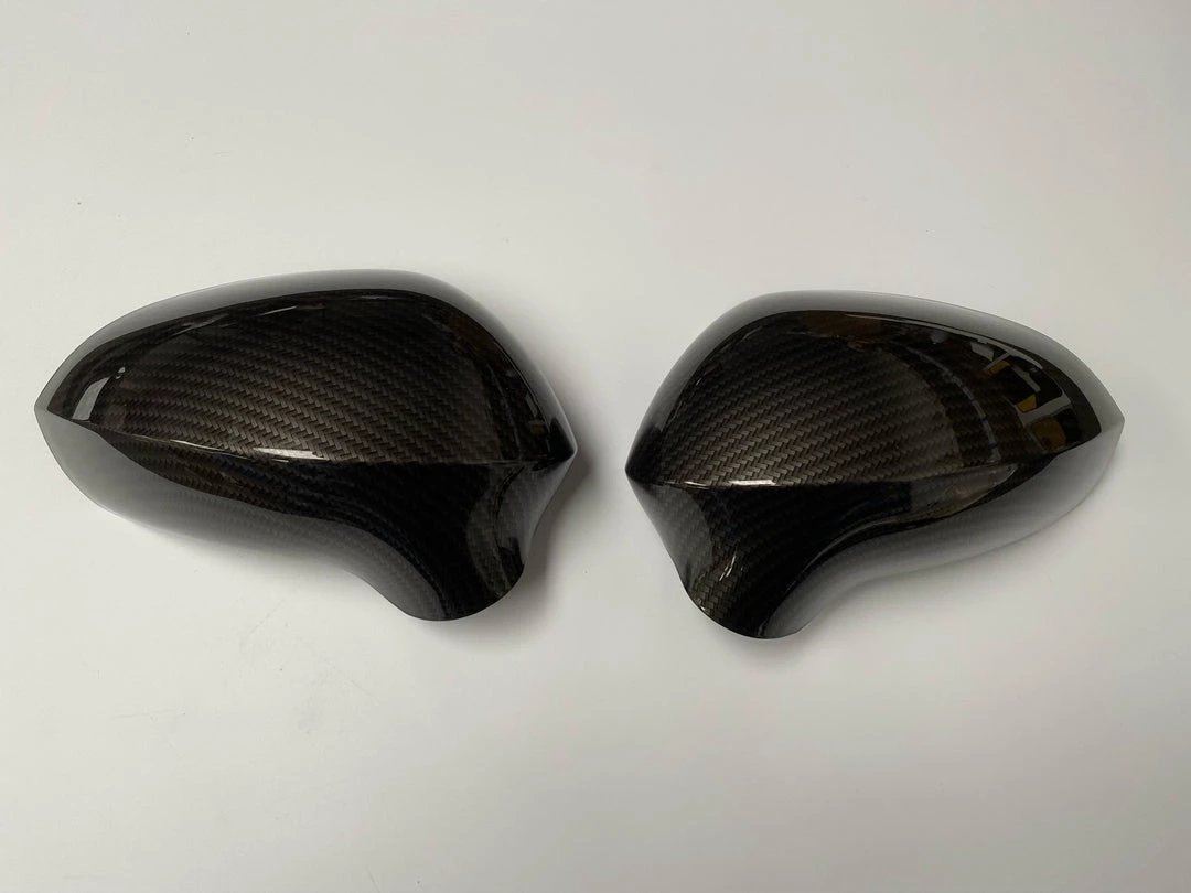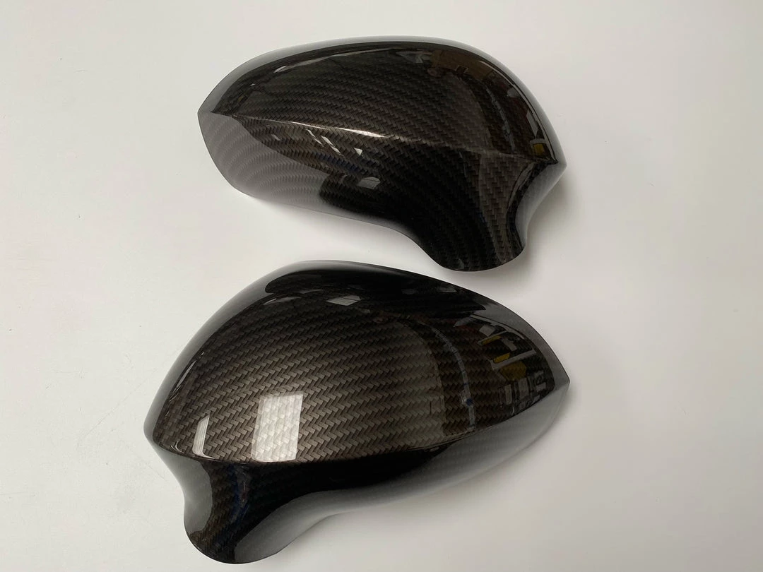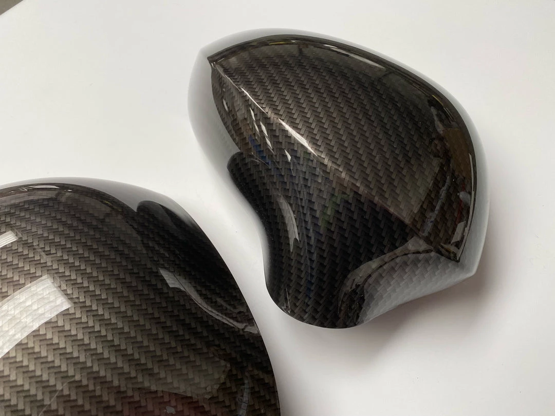 Replacement mirror covers professionally hydrodipped in our Carbon Fibre print.