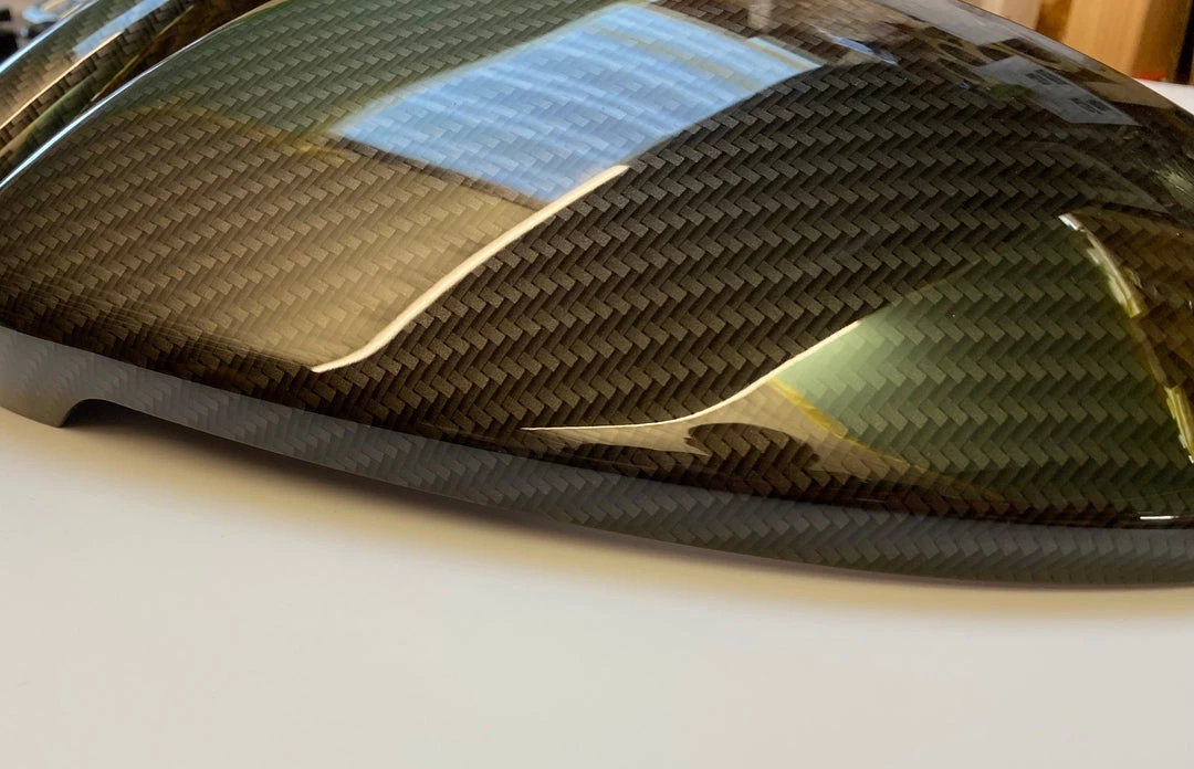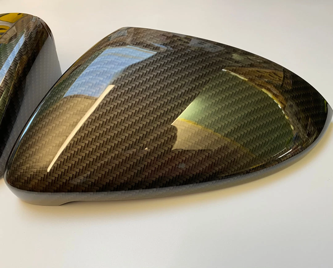 Volkwagen Golf Mk7/7.5 high quality replacement mirror covers which have been meticulously prepped, primed and finished in our stunning carbon fibre hydrodip.