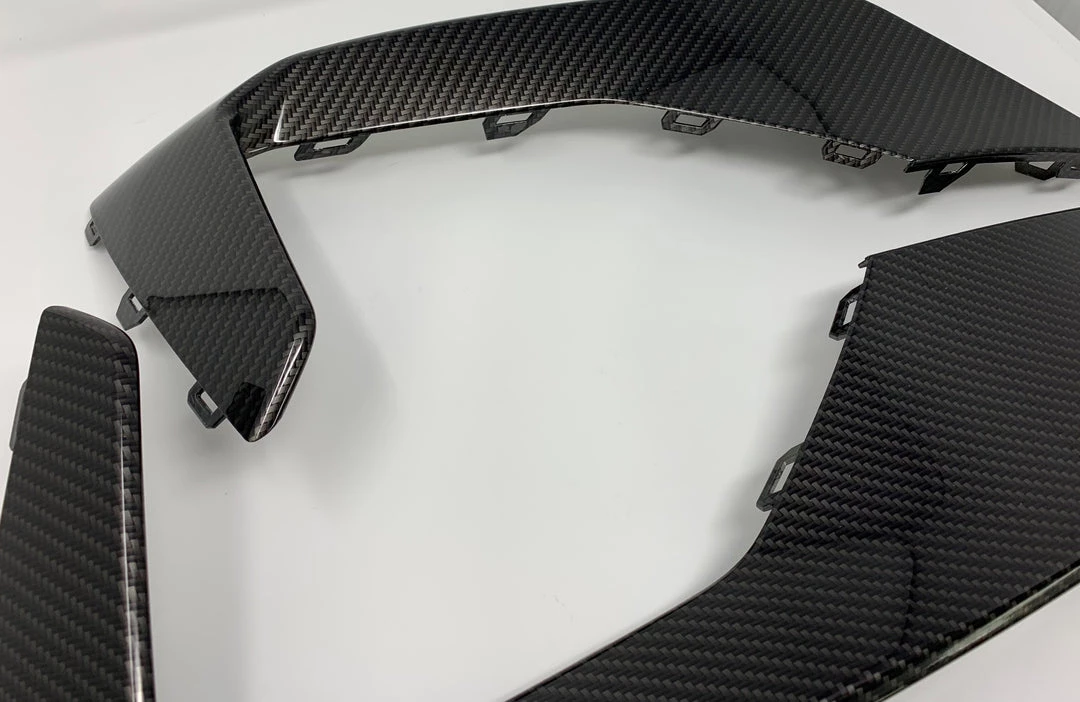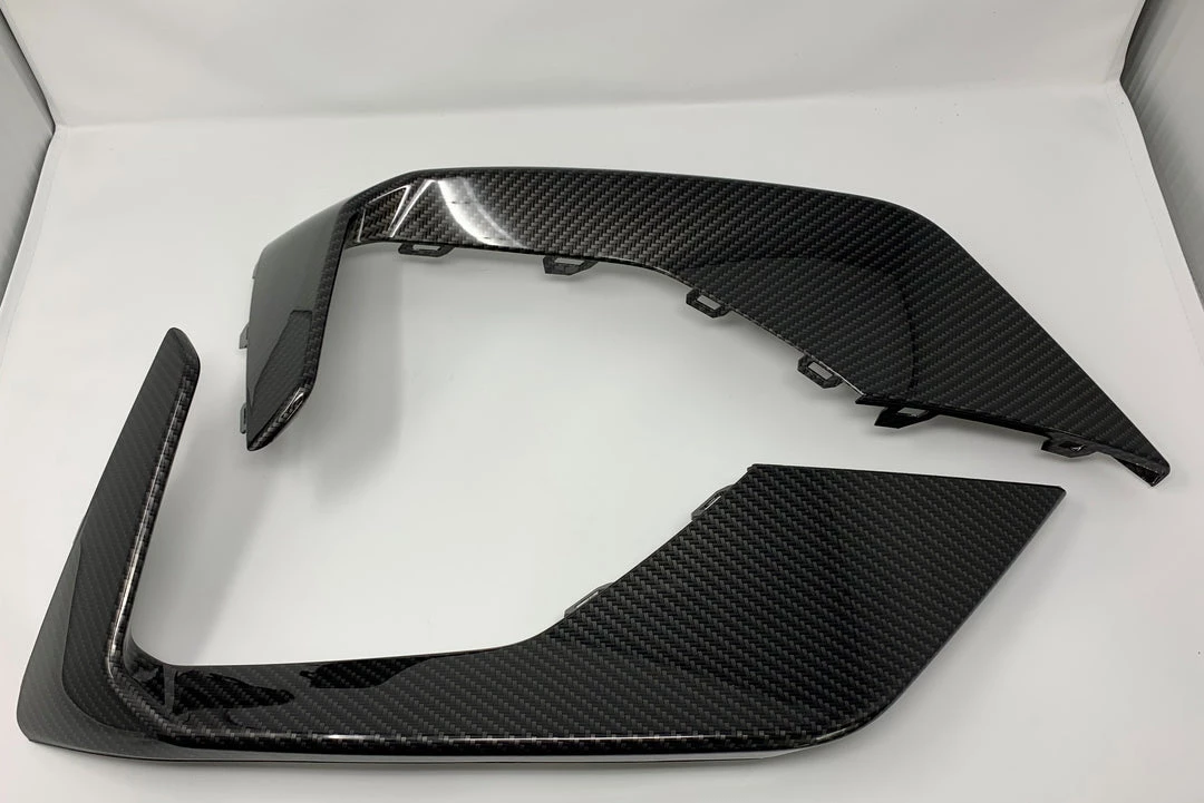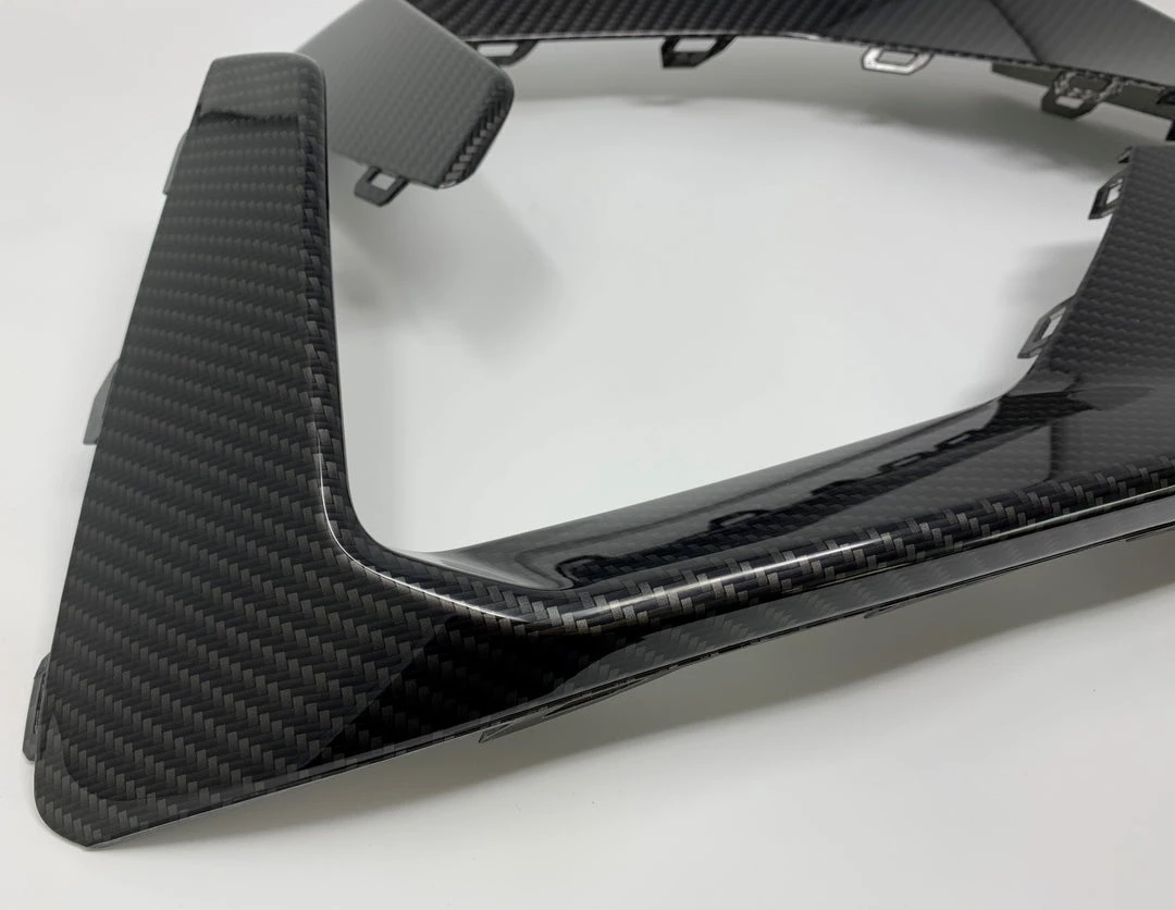A pair of genuine Ford outer fog light bezels for the MK4 Focus ST or ST Line, these have been professionally painted or hydrodipped using our carbon fibre print.