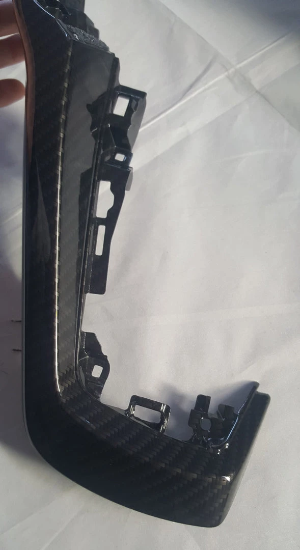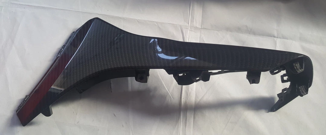 A genuine Ford Focus MK3 pre-facelift centre console edge trim which has been hydrdipped in our carbon fibre print. This panel will really add a bit of character to the interior of your Focus.