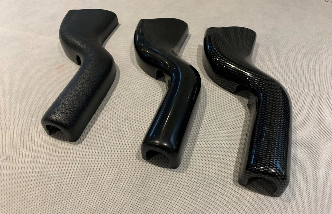 The rear A/C cover is a simple yet effective part which sits neatly over the pipe work, tidying up pipework and providing nice clean lines. Supplied in raw plastic, the item comes ready to be prepared, sanded and painted/hydrodipped. Textured plastic is also available for the OE factory look. These covers are now also available in a range of coloured plastics, including our gloss carbon fibre effect plastic and gloss black plastic. The covers have been manufactured from coloured material rather than prepped, painted and lacquered. Please bear in mind before purchasing that these are not perfectly colour matched to the vehicle colours.