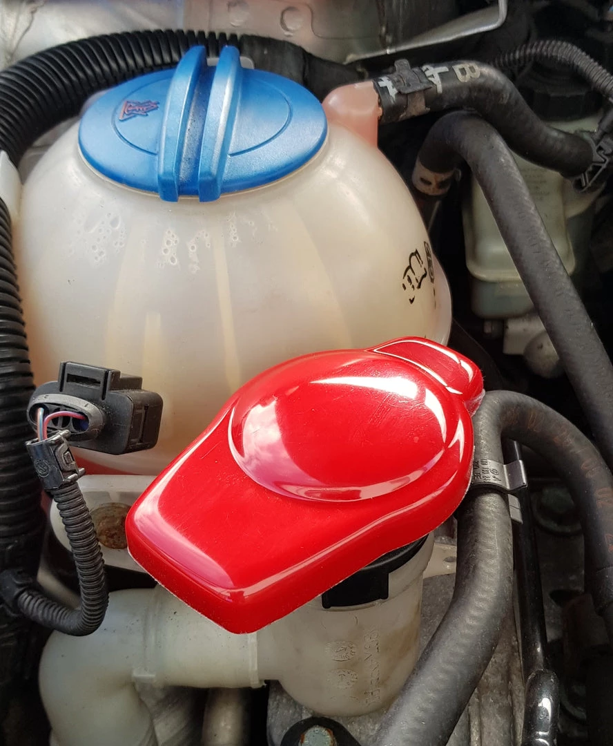 Tidy up your engine bay with a Proform Washer Bottle Cap Cover. This item fits over your existing cap.